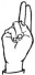 На ћирилици написано ДЕНИС ГРАНУЛА састоји се из 12 слова [?]. Исписано ћириличном једноручном азбуком за глувонеме: